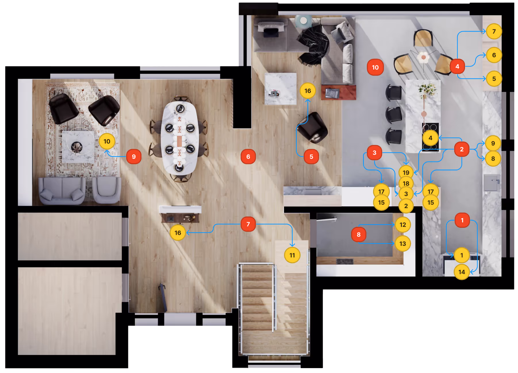 Interactive animations brought the appliances to life, allowing customers to see ovens opening with fresh meals, dishwashers starting, and vacuum cleaners showcasing their modular setups. The virtual tour featured a custom-designed user interface, with interactive buttons and seamless navigation options. Customers could explore products by walking through the tour, using a search function, or accessing a 3D floor plan.