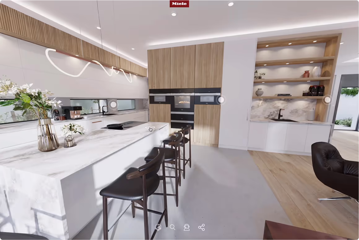 In pursuit of this vision, Miele teamed up with 360Pros, known for their expertise in crafting high-quality 3D, 360 virtual tour, and VR content. Together, they embarked on a journey to create the Miele Virtual Home, a project that would redefine online appliance shopping and set new standards in virtual marketing.